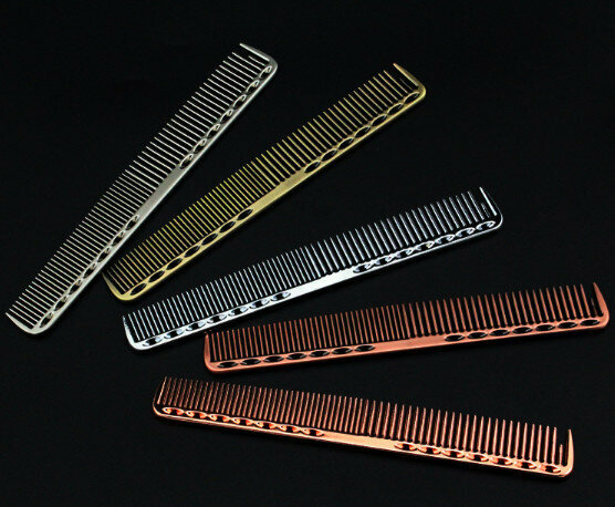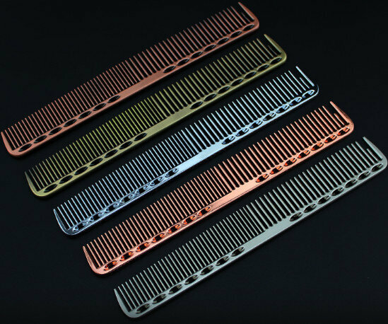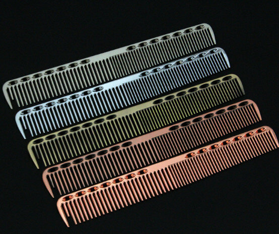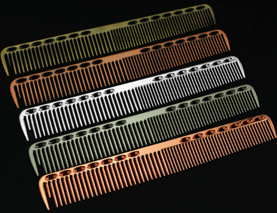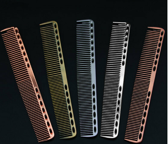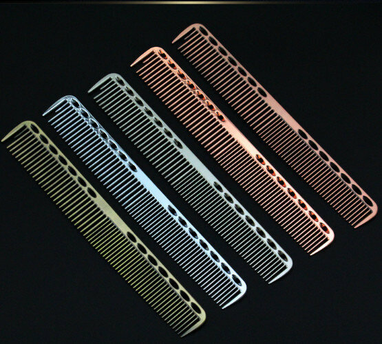 爆款太空鋁美髮梳子(四孔平頭梳-古銅粉)