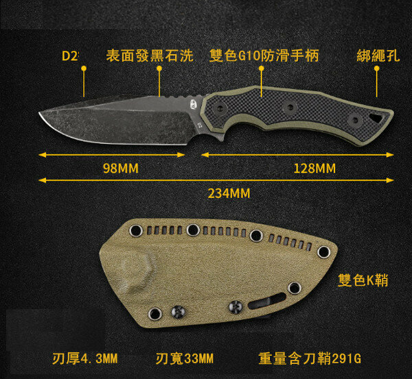 新款裂變戶外直刀-【D-123】全長234mm