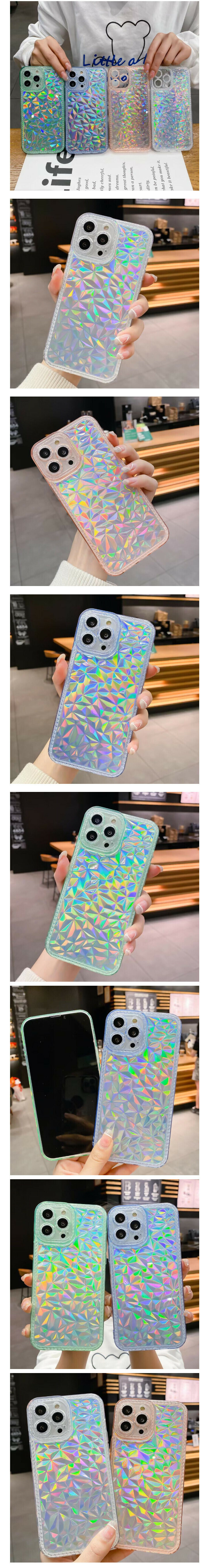 新款手機殼適用蘋果13/12Promax【透藍色+鐳射卡紙】立體鑽石紋※】(下單後聯絡客服確認手機型號)