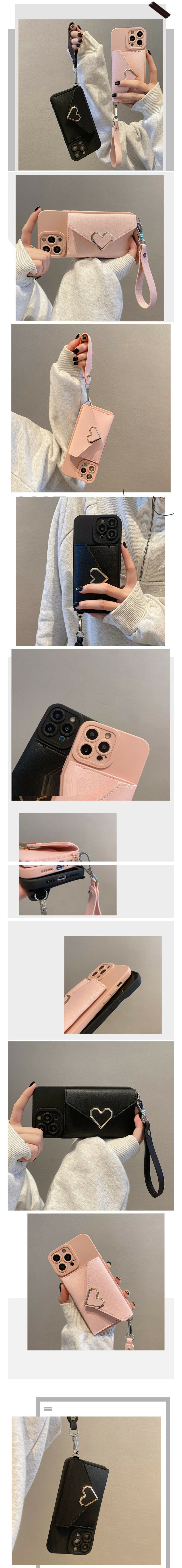 新款手機殼適用蘋果13/iphone14【粉色愛心卡包+手鍊】(下單後聯絡客服確認手機型號)