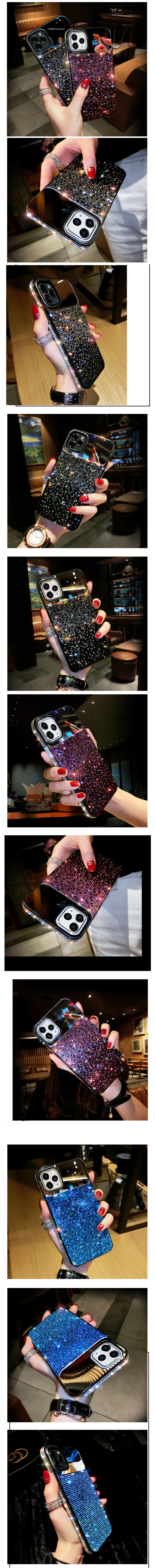 新款手機殼適用蘋果13/iphone14【千鑽補妝鏡 漸變黑】(下單後聯絡客服確認手機型號)