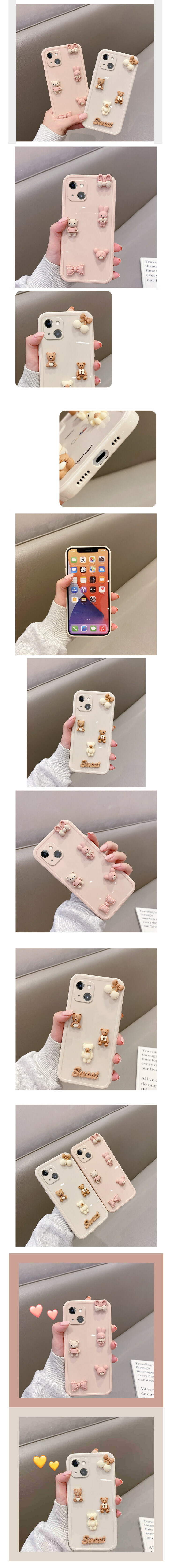 新款手機殼適用蘋果13/iPhone14/12promax【粉色立體蝴蝶結小熊】(下單後聯絡客服確認手機型號)