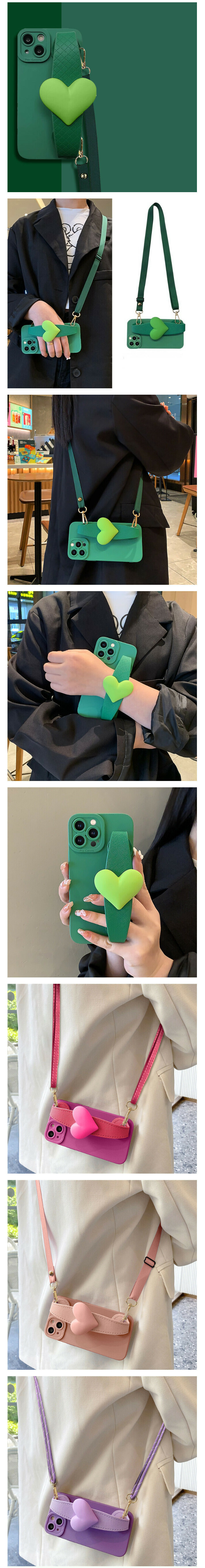 新款手機殼適用蘋果14/iPhone13【藍色大愛心腕帶+斜挎繩】(下單後聯絡客服確認手機型號)