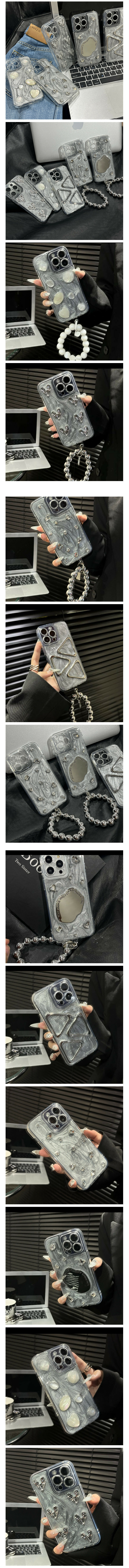 新款手機殼適用iphone14promax蘋果13【銀色鏡面+銀珠鍊條】(下單後聯絡客服確認手機型號)