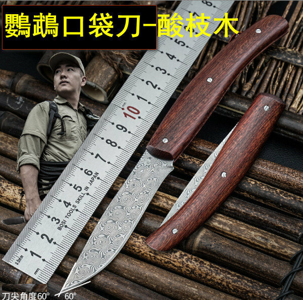 新款鸚鵡口袋刀-酸枝木柄摺刀【ZD-072】總長185mm