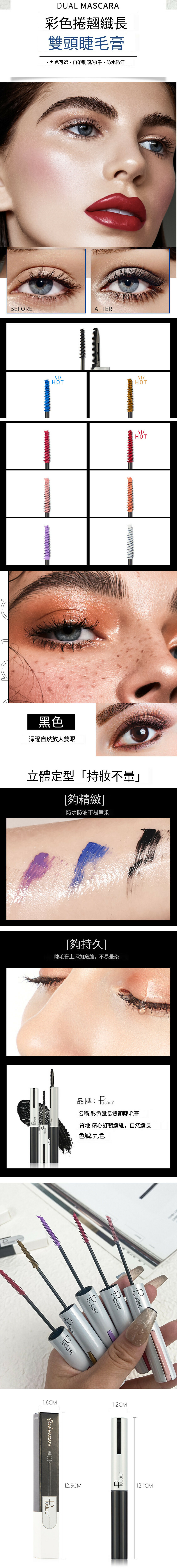 新款Pudaier彩色睫毛膏纖長卷翹防水不脫妝(08)
