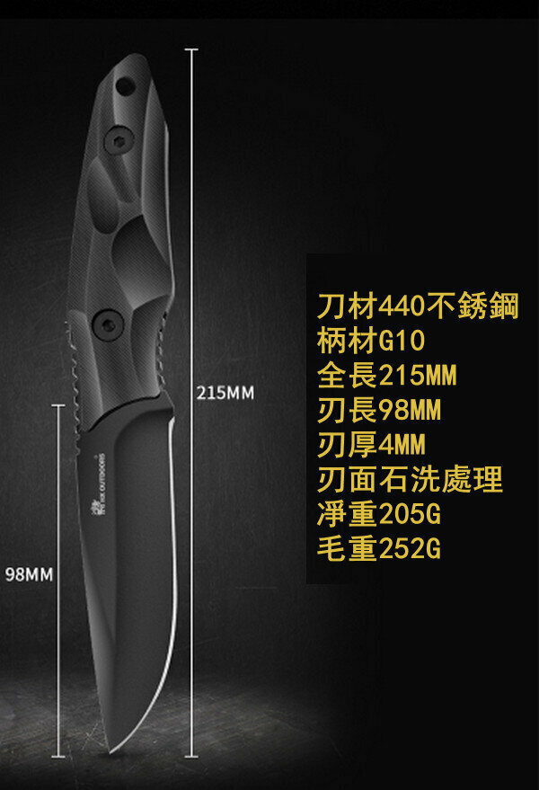 新款不銹鋼黑蝰蛇高硬度戰術直刀-【HRXD-1】全長215MM