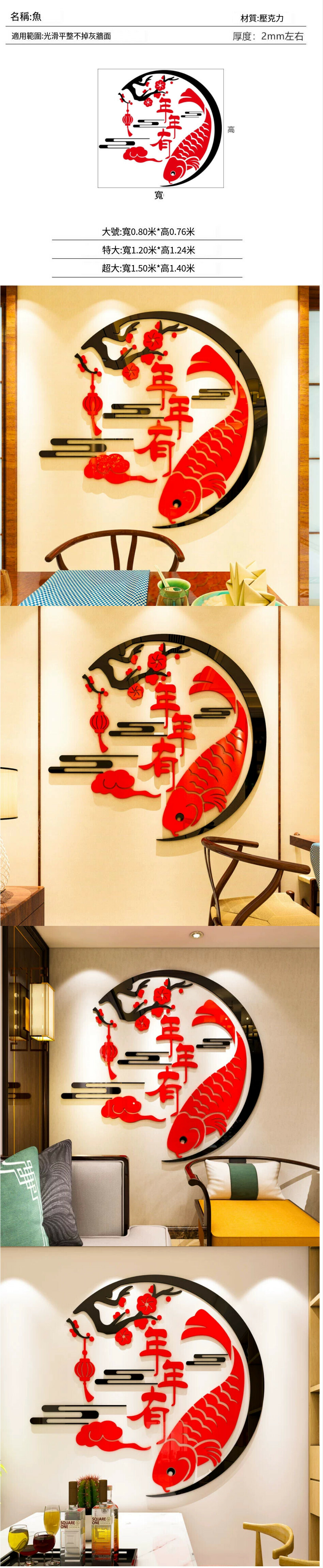 爆款年年有魚3d立體亞克力牆貼【魚】尺寸【大】