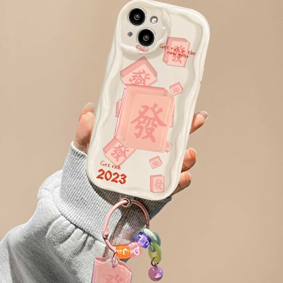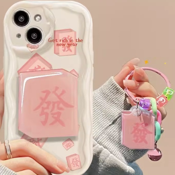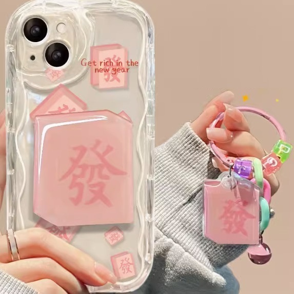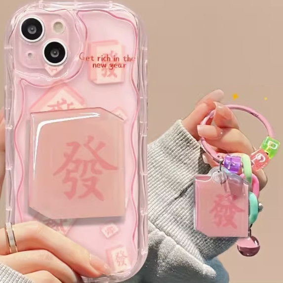 爆款趣味發財麻將適用華為手機殼(透粉【發財文字+麻將支架+掛墜款】(下單後聯絡客服確認手機型號)