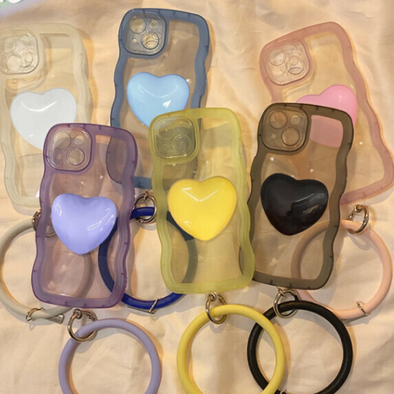 爆款大波浪愛心支架適用OPPO手機殼(寶石藍【愛心支架+手環款】(下單後聯絡客服確認手機型號)