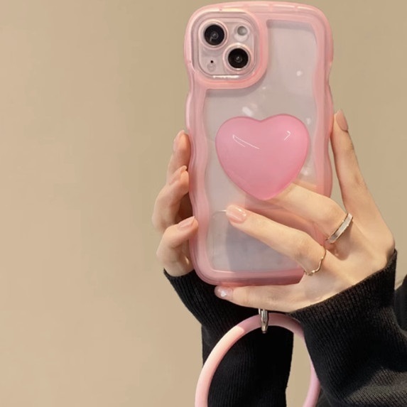 爆款大波浪愛心支架適用OPPO手機殼(香芋紫【愛心支架+手環款】(下單後聯絡客服確認手機型號)