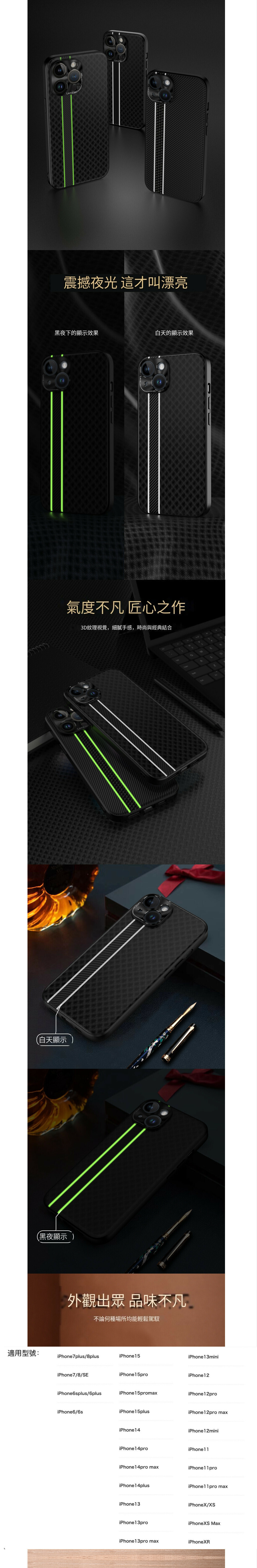 爆款碳纖維夜光素皮熒適用於iPhone系列手機殼(碳纖維黑色格紋)(下單後聯絡客服確認手機型號)
