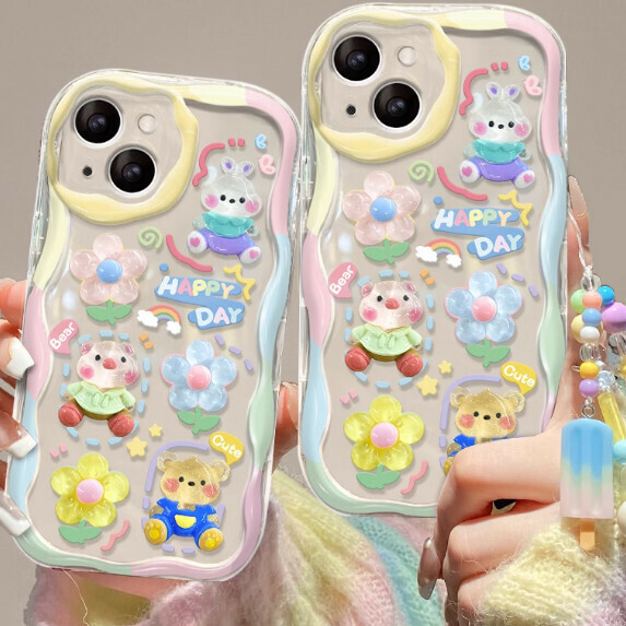 爆款奶油小清新適用於華為手機殼(塗鴉【立體公仔+冰棍手鏈款】(下單後聯絡客服確認手機型號)