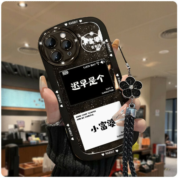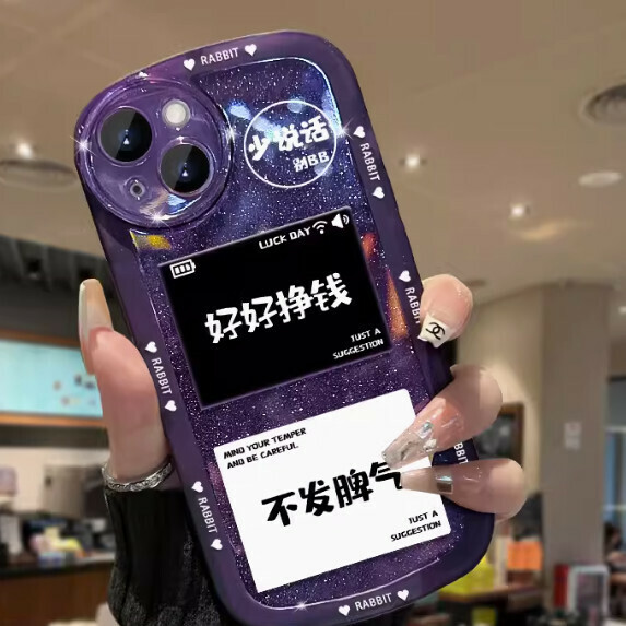 爆款創意文字適用蘋果手機殼(透紫_小富婆+手繩款(下單後聯絡客服確認手機型號)