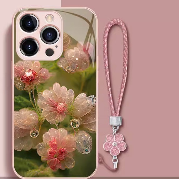爆款水晶花適用華為手機殼(少女粉【水晶花+同款掛繩款】(下單後聯絡客服確認手機型號)