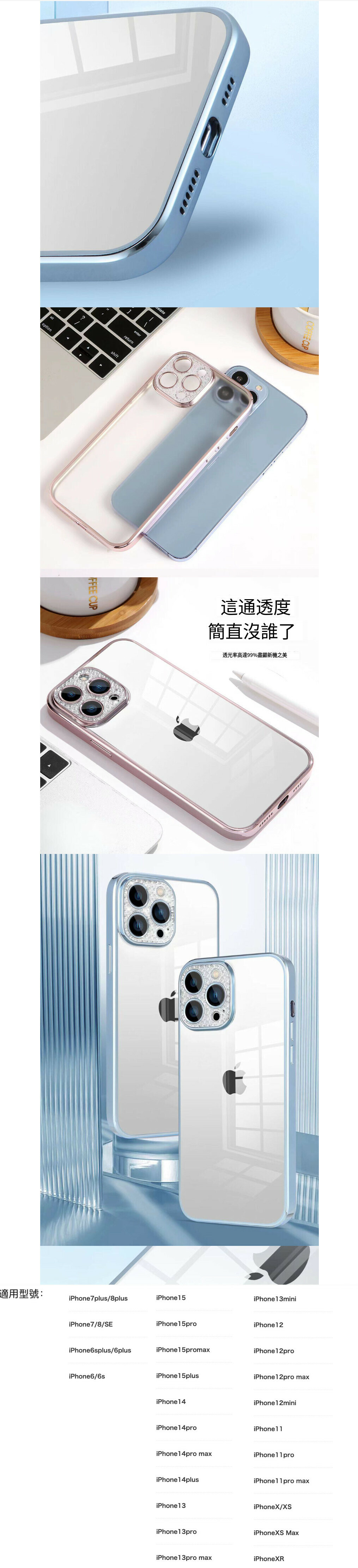 爆款電鍍防摔鏡頭閃鑽適用於iPhone系列手機殼(遠峰藍)(下單後聯絡客服確認手機型號)