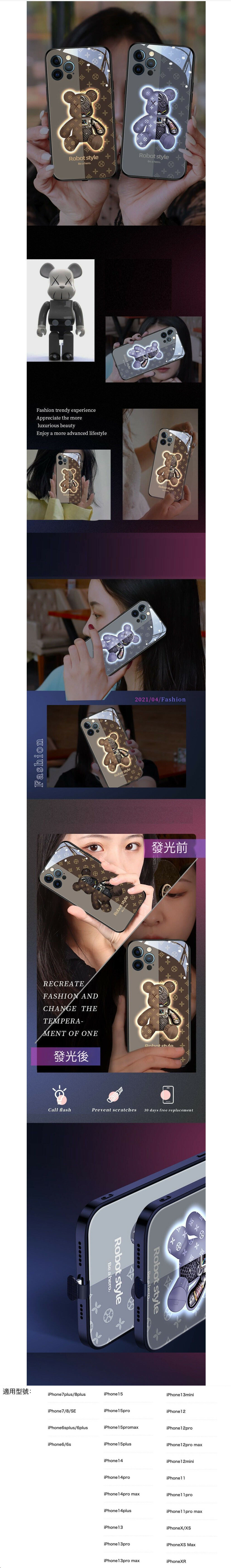 爆款玻璃發光來電閃適用於iPhone系列手機殼(暴力熊8頭像藍【精孔】)(下單後聯絡客服確認手機型號)