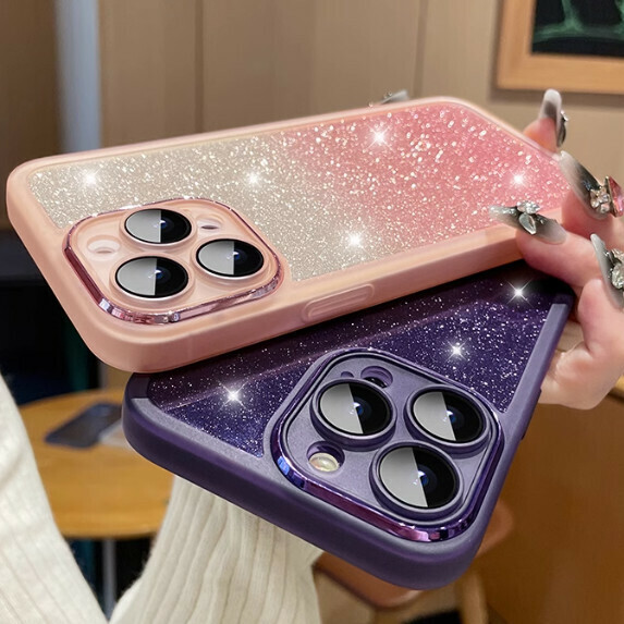 爆款漸變閃粉適用於VIVO手機殼(自帶鏡頭膜【透紫+漸變閃粉卡】(下單後聯絡客服確認手機型號)