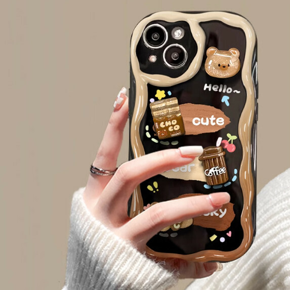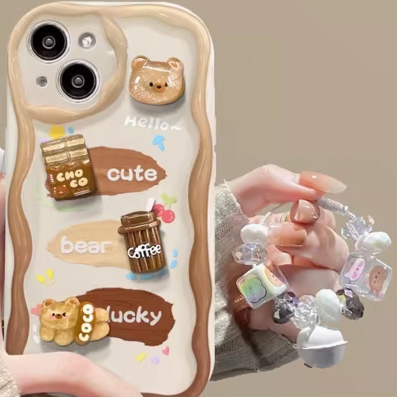爆款塗鴉適用OPPO手機殼(白色塗鴉【立體公仔_咖啡熊】+鈴鐺掛墜款(下單後聯絡客服確認手機型號)