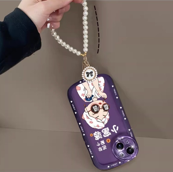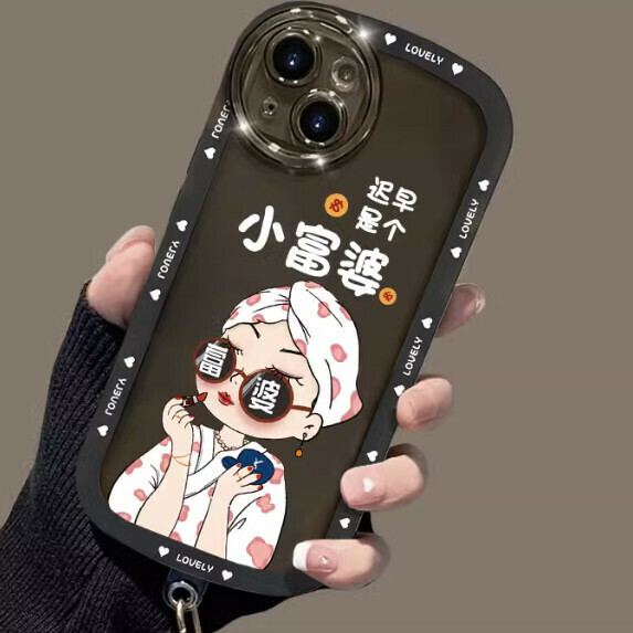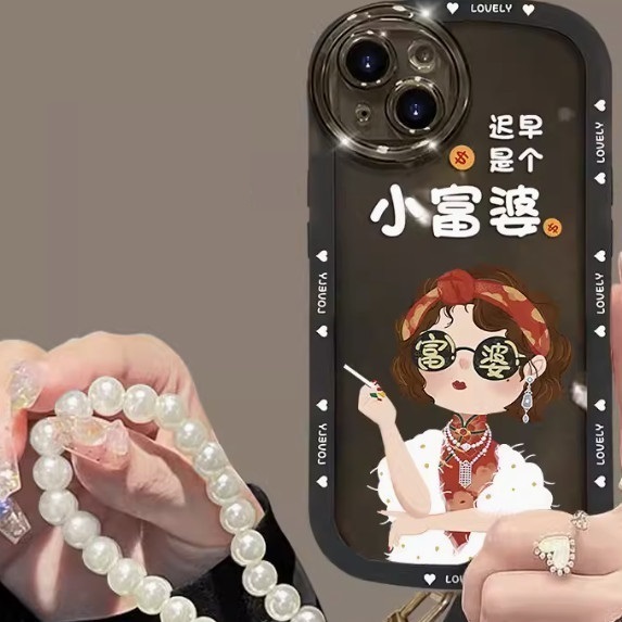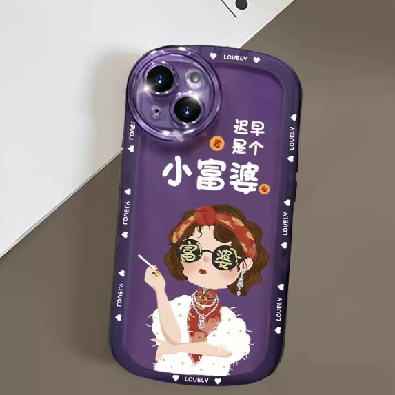爆款我是富婆適用蘋果手機殼(透紫【浴袍_遲早是個小富婆+手鏈款】(下單後聯絡客服確認手機型號)