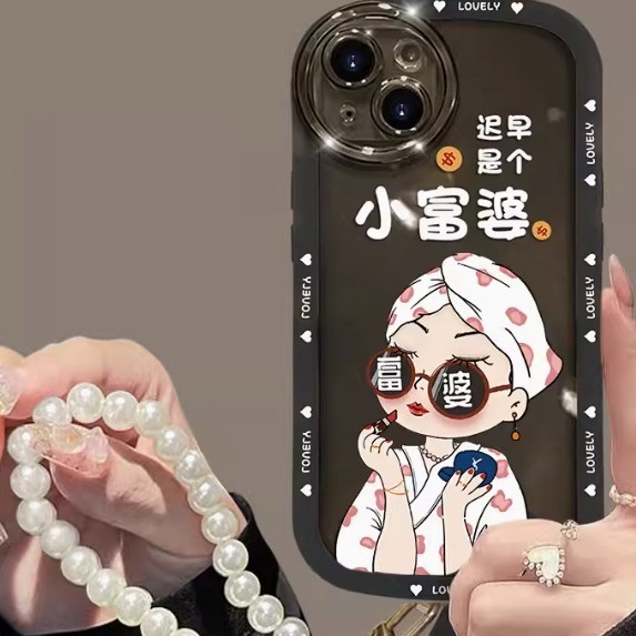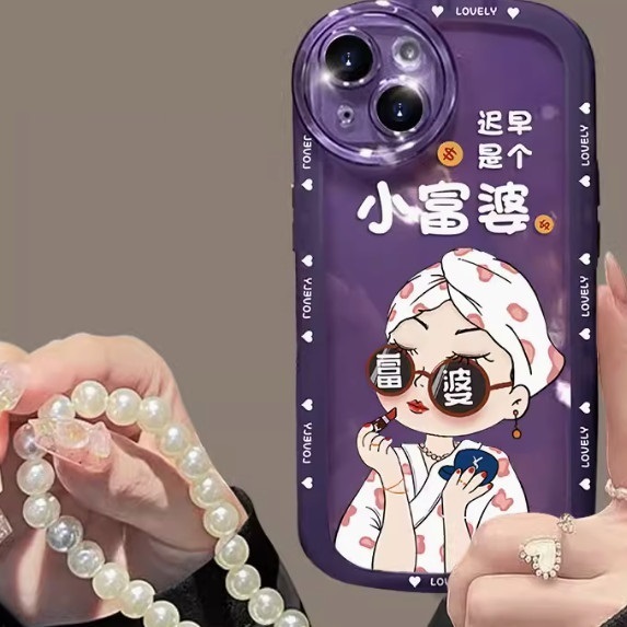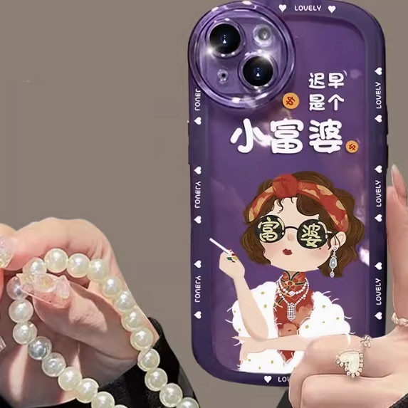 爆款我是富婆適用蘋果手機殼(透紫【旗袍_遲早是個小富婆+手鏈款】(下單後聯絡客服確認手機型號)