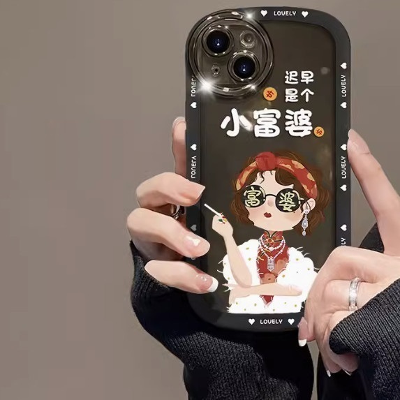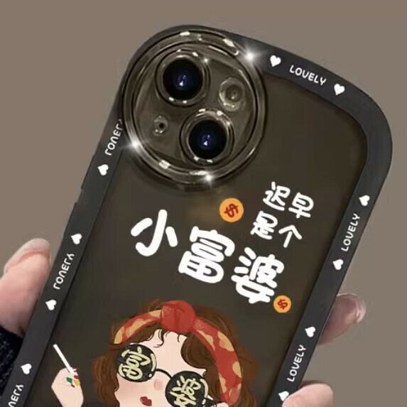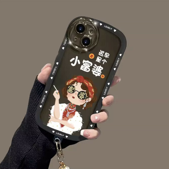 爆款我是富婆適用蘋果手機殼(透黑【浴袍_遲早是個小富婆+手鏈款】(下單後聯絡客服確認手機型號)