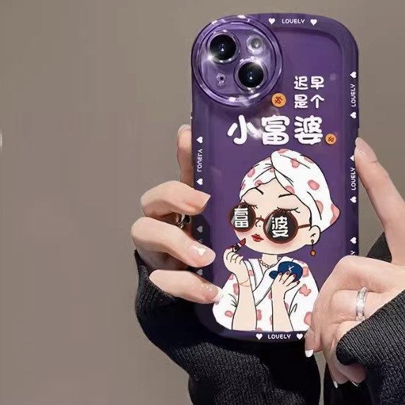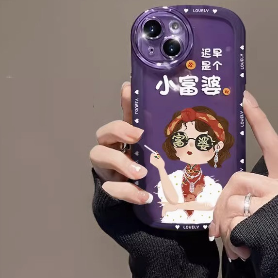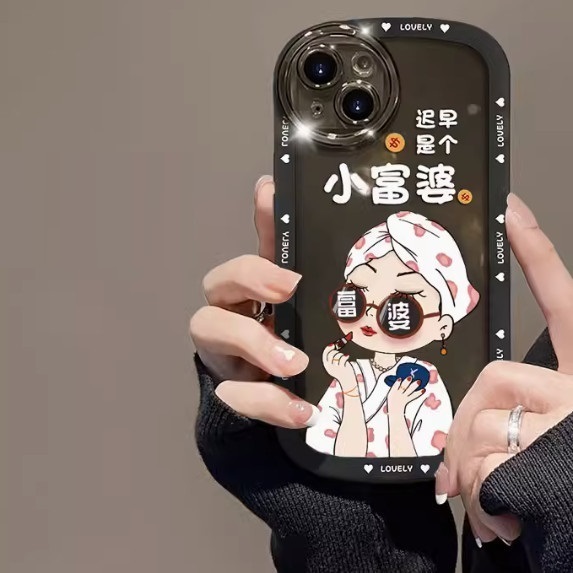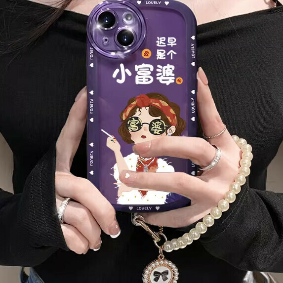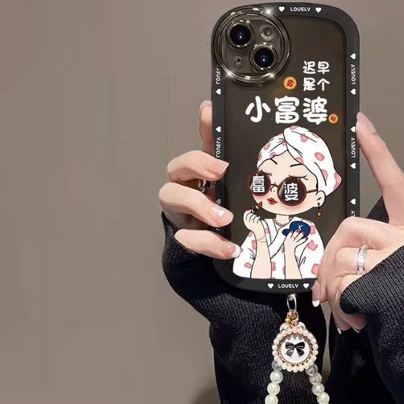 爆款我是富婆適用蘋果手機殼(透黑【旗袍_遲早是個小富婆+手鏈款】(下單後聯絡客服確認手機型號)