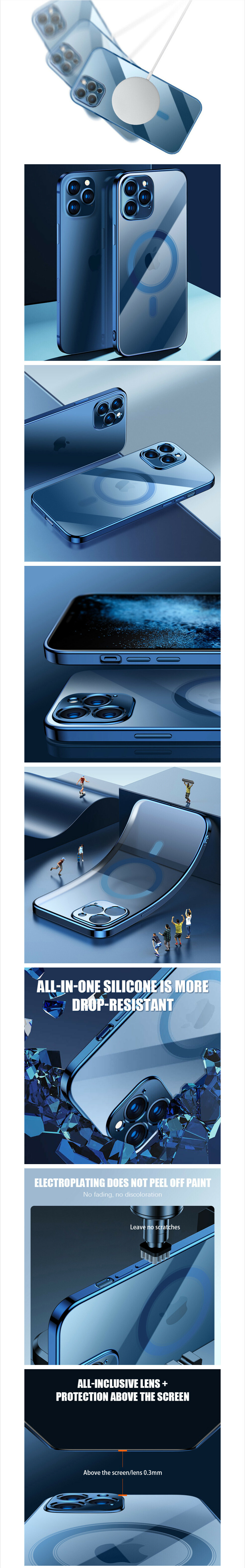 爆款磁吸軟電鍍全包適用於iPhone系列手機殼(寶藍色)(下單後聯絡客服確認手機型號)