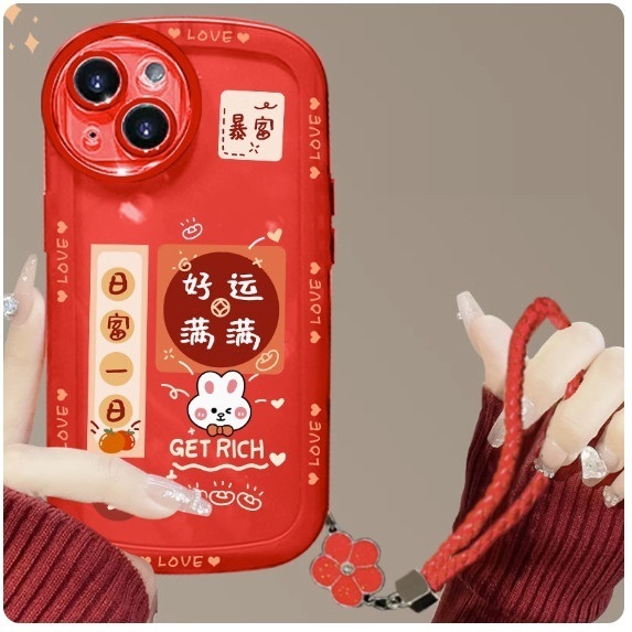 爆款新年款適用OPPO手機殼(中國紅【好運滿滿+手繩款】(下單後聯絡客服確認手機型號)