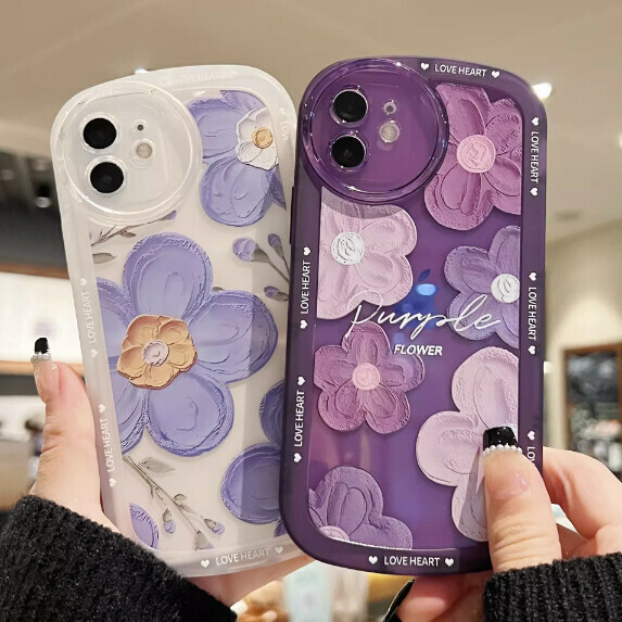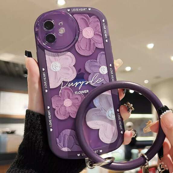 爆款紫色油畫花適合OPPO手機殼(透紫【油畫花+手環款】(下單後聯絡客服確認手機型號)