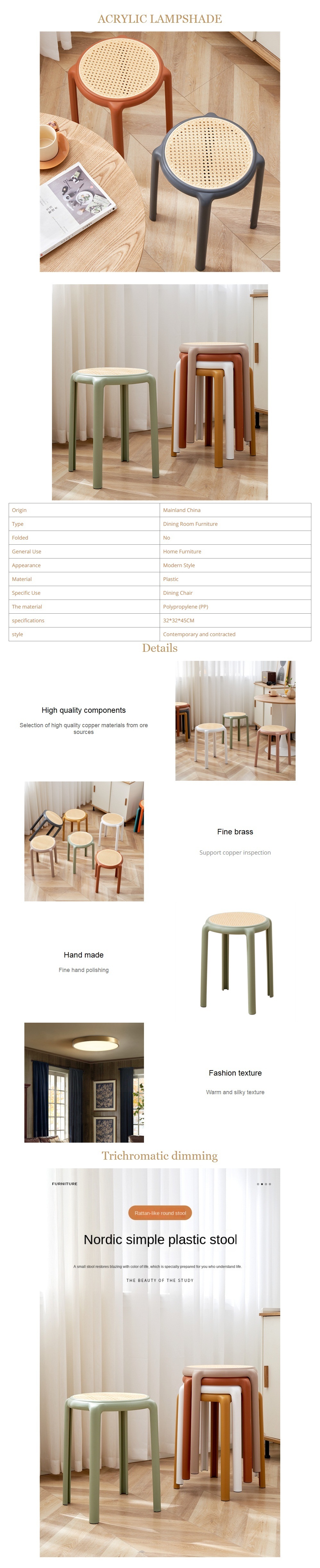 爆款膠凳可疊起餐椅仿藤椅高腳凳(粉色)