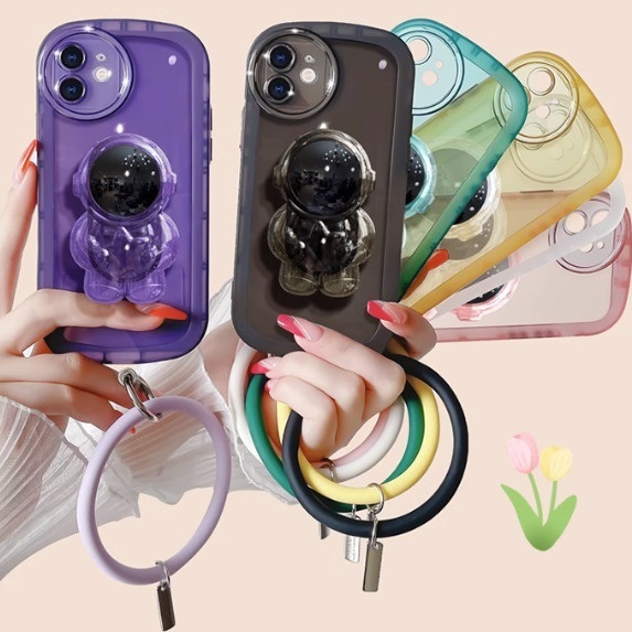 爆款立體支架適用榮耀手機殼(透明粉【宇航員支架+手環款】(下單後聯絡客服確認手機型號)
