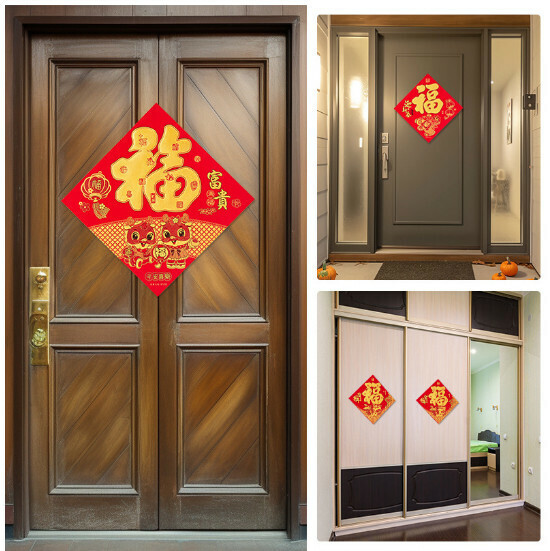 激抵春節過年大門貼福字(平安富貴 大號(邊長43cm,對角線61cm左右)