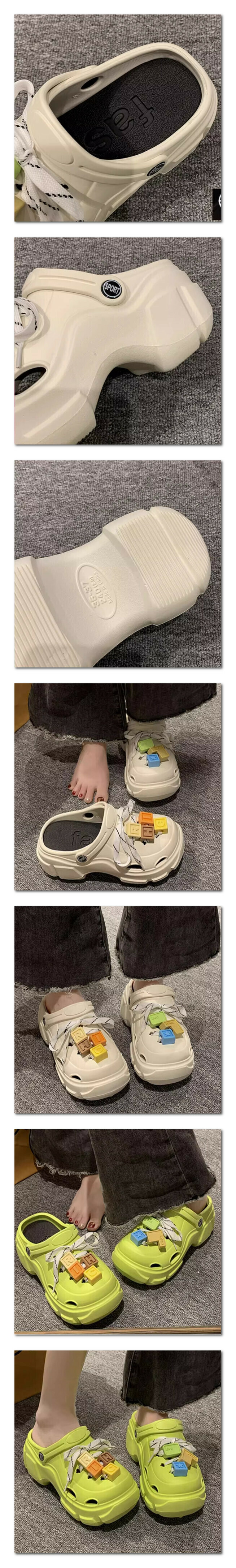 激抵厚底包頭兩穿洞洞涼拖女(白色【38-39碼】(鞋帶,積木顏色隨機)
