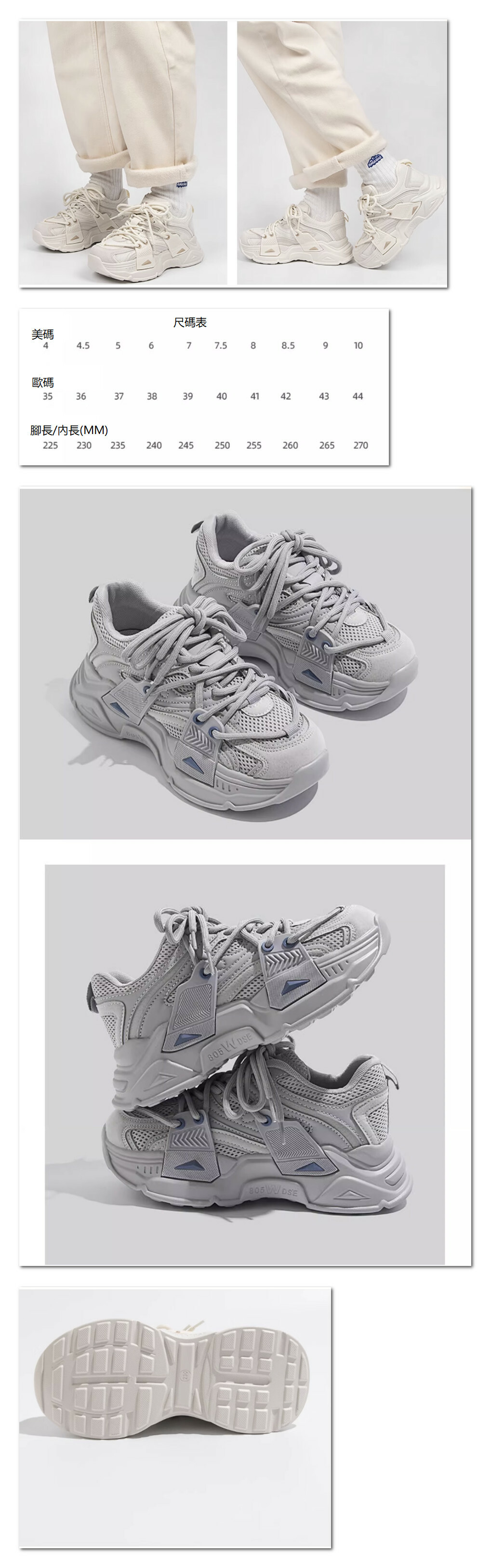 激抵厚底輕便舒適老爹鞋女鞋(灰色)(尺碼:35-40)(下單後聯絡客服確認發貨尺碼)】