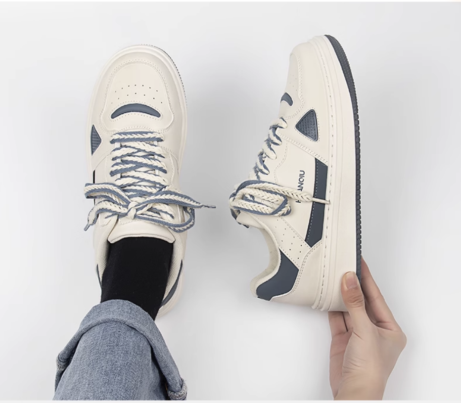 新款厚底潮流休閒運動板鞋男鞋(白淺藍)(尺碼:39-44)(下單後聯絡客服確認發貨尺碼)】