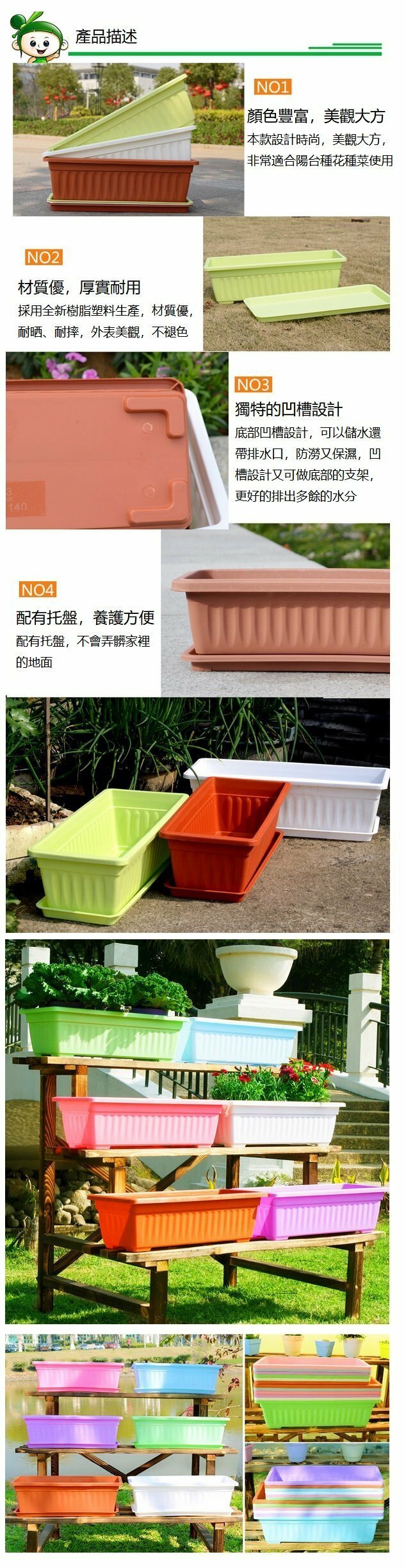 爆款加厚長方形膠花盆(白色-特大號70x20x15.5cm)
