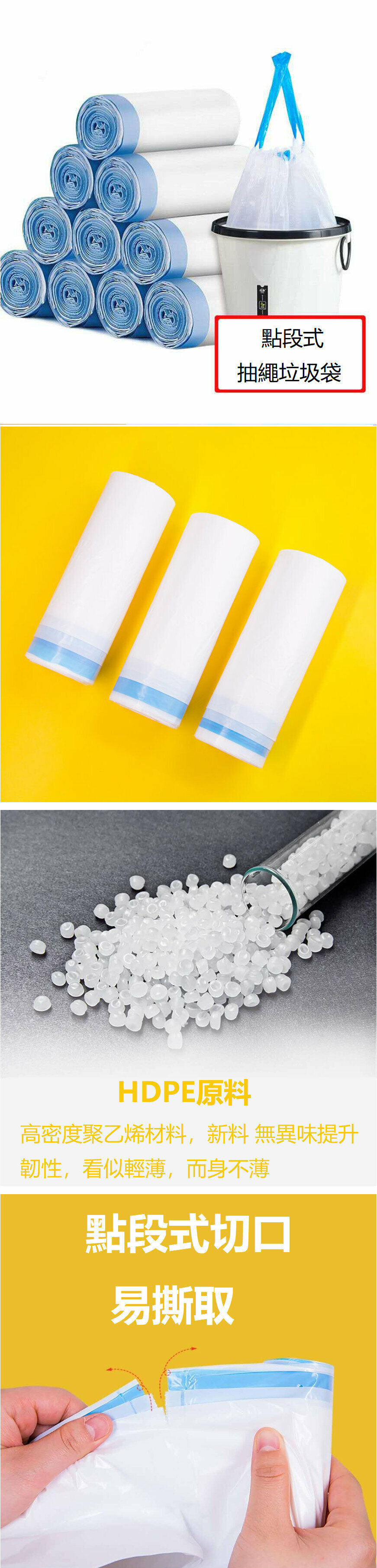 爆款加厚索帶抽繩垃圾袋 [白色/45*50cm] (15隻*1卷裝)