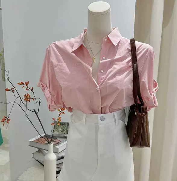 熱賣薄款純棉寬松休閑上衣(粉色 尺碼:S-3XL)(下單後請聯絡客服確認發貨尺碼)