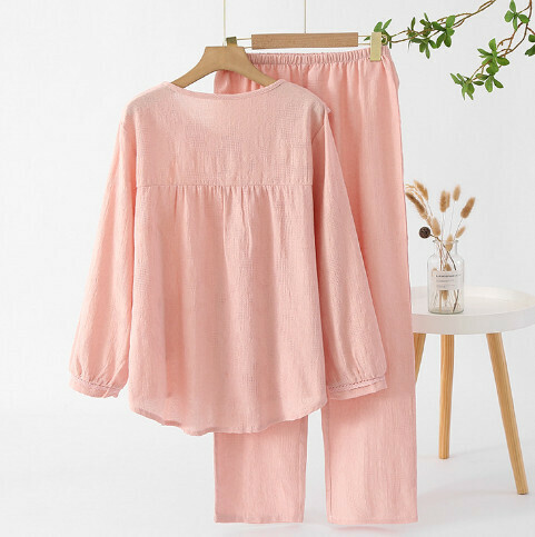 新款薄款長袖寬鬆睡衣套裝(SXL粉色海軍領)【M-XL碼】【下單後聯絡客服確認發貨尺碼】