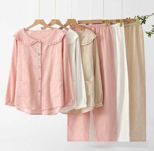 新款薄款長袖寬鬆睡衣套裝(SXL白色圓領)【M-XL碼】【下單後聯絡客服確認發貨尺碼】