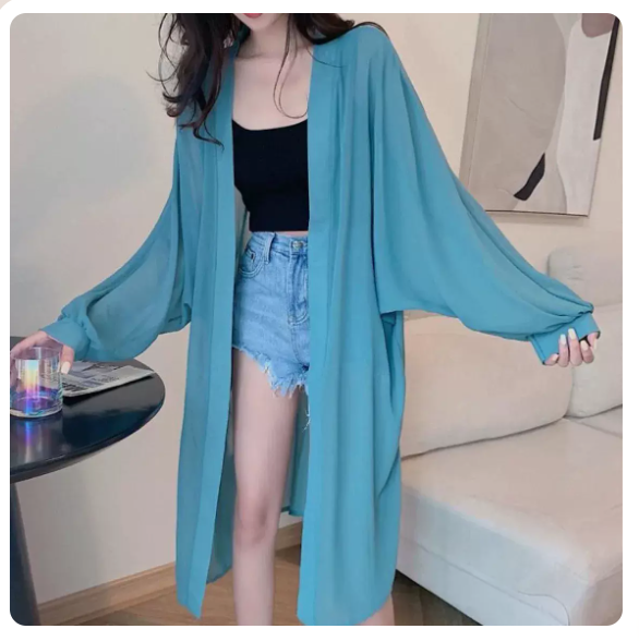 新款薄款長袖寬松防曬衫(藍色 尺碼:S-3XL)(下單後請聯絡客服確認發貨尺碼)