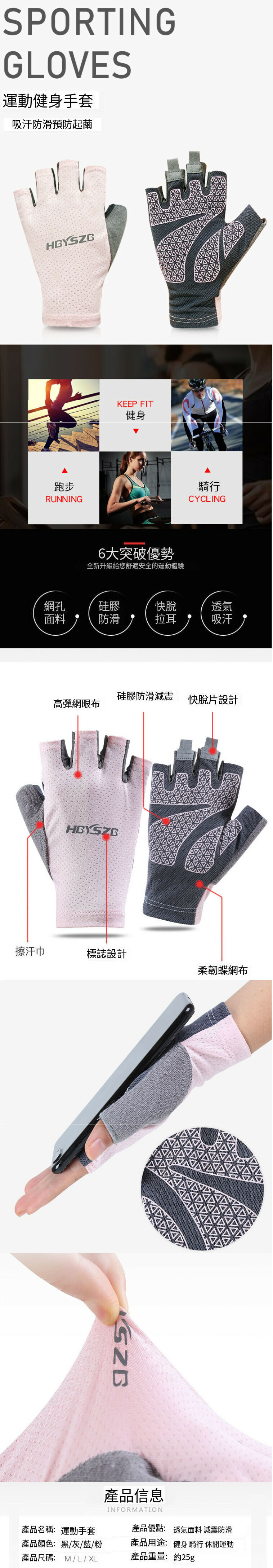 熱賣薄款男女運動健身手套(冰絲半指開口笑粉色 M碼)