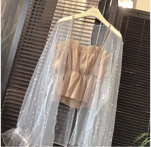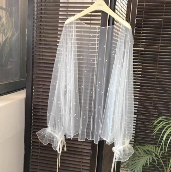 新款網紗外搭開衫外套薄款(白色)(均碼)
