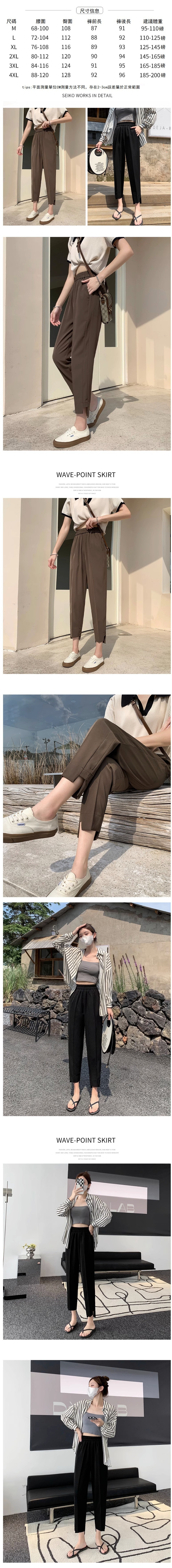 熱賣薄款開叉九分煙管褲(黑色)(碼數:M/L/XL/2XL/3XL/4XL)(下單後聯絡客服確認尺碼)】