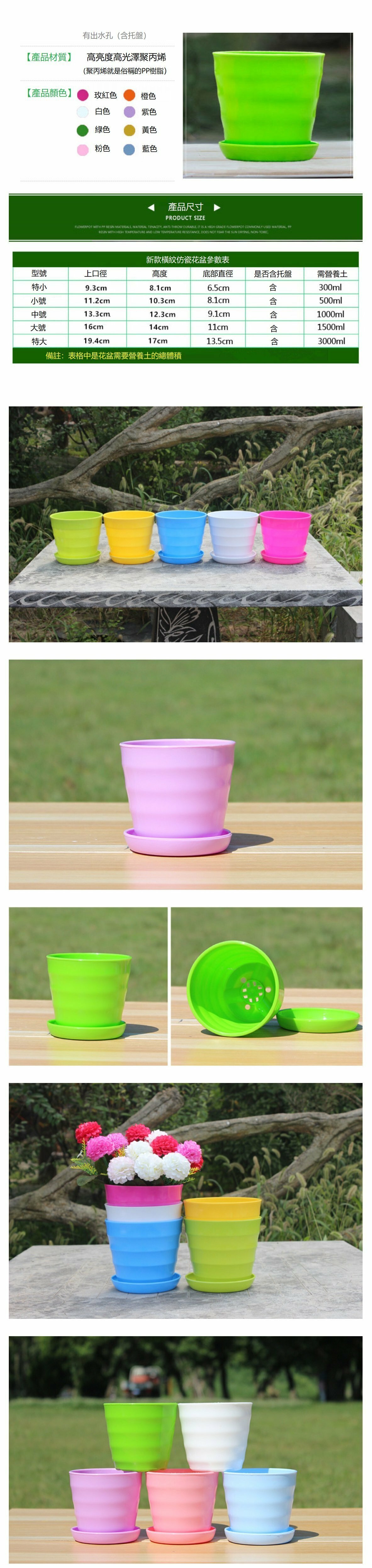 激抵螺紋花盆(粉色盆+托盤 中號)(上口徑13.3cm 高12.3cm)