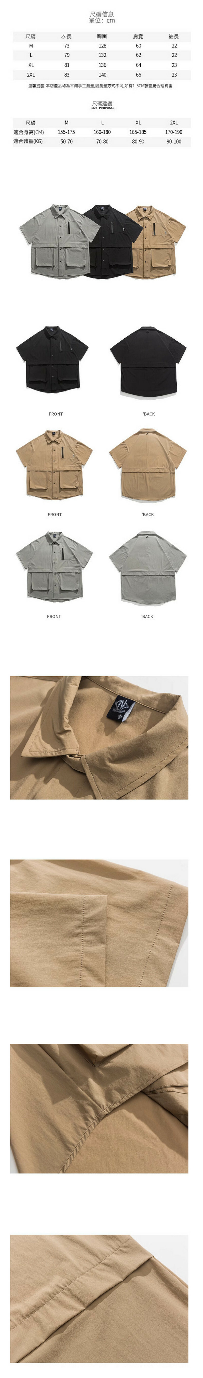 爆款立體口袋工裝短袖襯衫(灰色)【M-2XL碼】【下單後聯絡客服確認發貨尺碼】