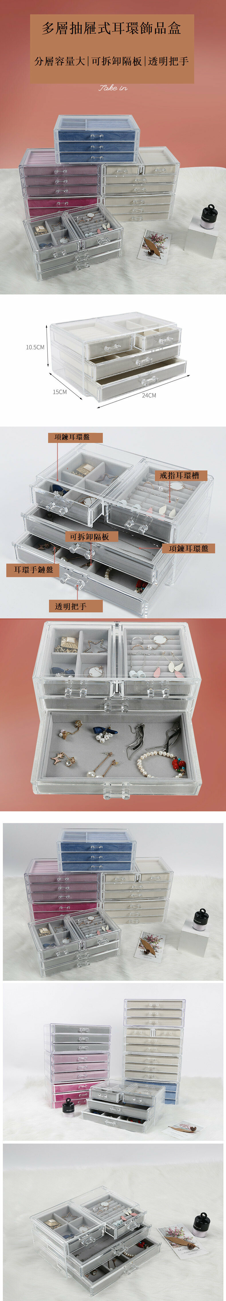 熱推三層四抽屜式化妝盒 桌面首飾收納盒(24*13.5*11cm)