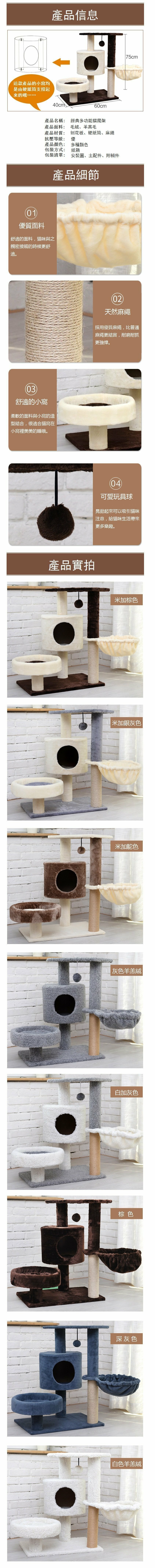 熱推三層跳臺空中床貓窩貓樹(灰色羊羔絨)40*60*75