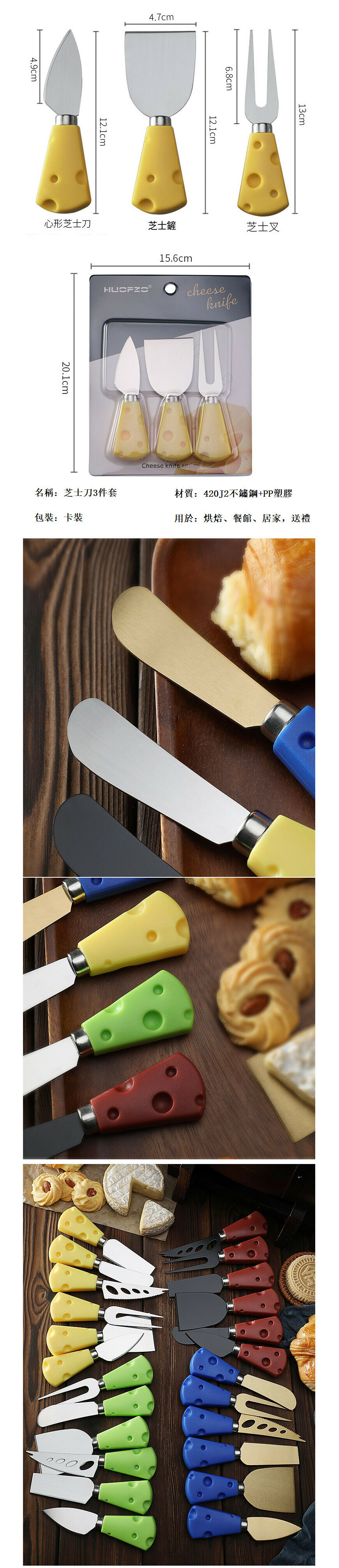 熱推塑膠柄芝士刀叉三件套(黃柄A款)